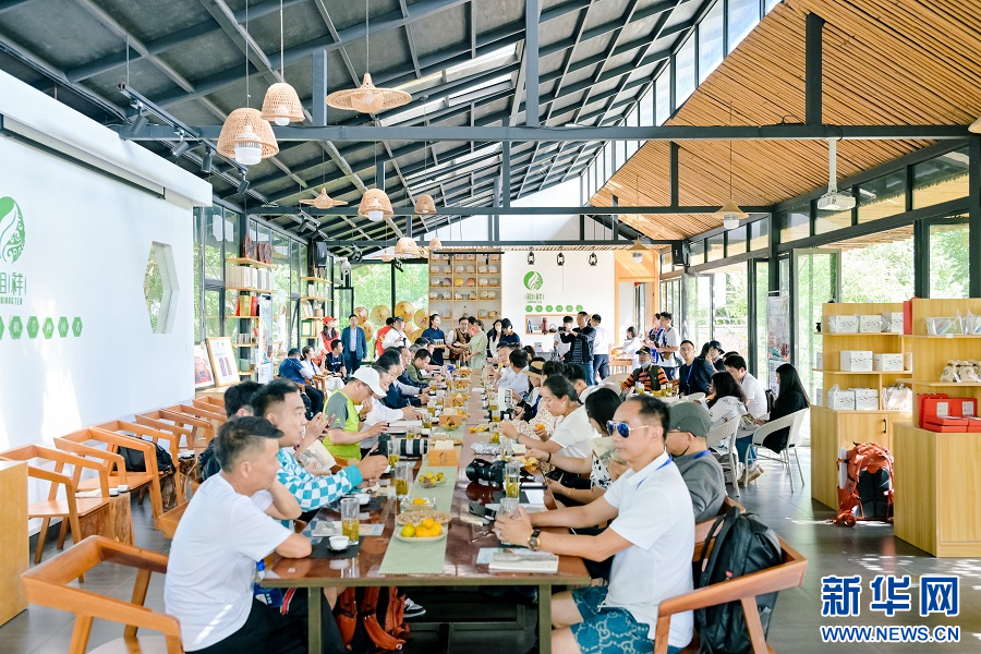 在普洱祖祥高山有機茶園品茶(10月23日攝)。新華網(wǎng)發(fā)(云南農(nóng)信社 供圖)