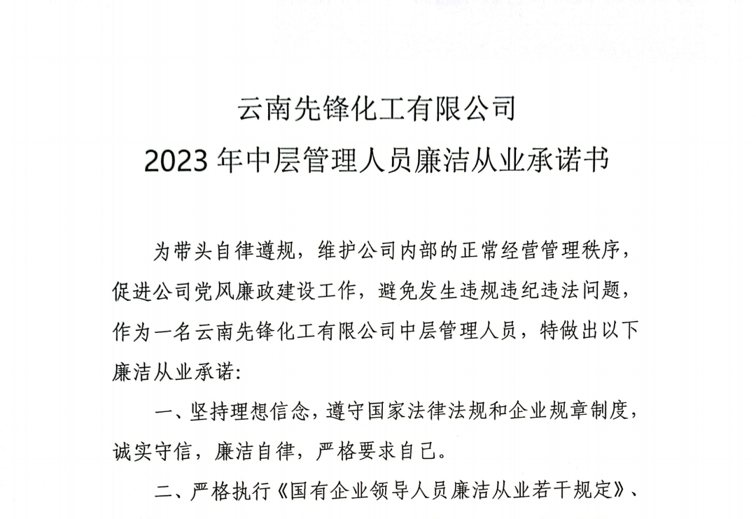 春節(jié)將至,為切實(shí)把好廉政關(guān),及時(shí)打好節(jié)前“預(yù)防針”,提高黨員領(lǐng)導(dǎo)干部“免疫力”。先鋒化工開(kāi)展以“廉”為核心,“潔”為輔助的廉潔“五個(gè)一”活動(dòng),即簽訂一份廉潔承諾書、懸掛一條廉潔橫幅、進(jìn)行一次廉潔談話、發(fā)送一份廉潔過(guò)節(jié)提醒函、開(kāi)展一次警示教育,通過(guò)多渠道多角度開(kāi)辟新途徑,引導(dǎo)黨員干部群眾樹(shù)立正確的人生觀、價(jià)值觀,營(yíng)造“敬廉崇潔”的良好企業(yè)環(huán)境。